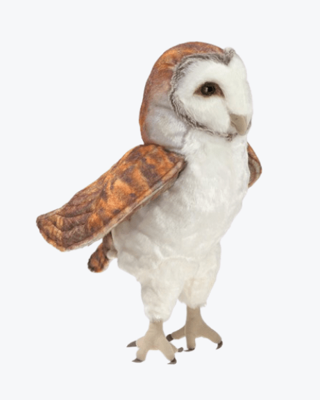 Barn owls frequently live up to their name by inhabiting barns and other abandoned structures in rural areas. This puppet is a little larger than a wild Barn Owl and features all the details of a barn Owl. A feathery plush body is accented with exquisitely printed wings that take flight with your expansive imagination.